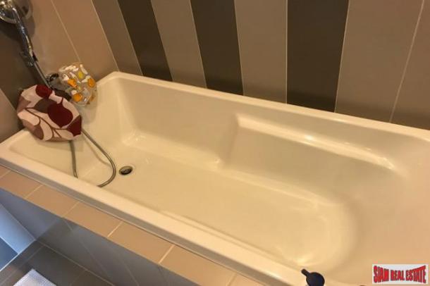 A furnished three bedroom, three bath condo in the Teal Sathorn-Taksin is being offered for sale. Located on the 26th floor there is a big balcony that runs the length of the apartment with spectacular views of the city.The living area is open with a spacious living room that houses a sofa, two chairs and a large flat screen TV. Separated by a small wall is the dining area with a table and chair that seats six. These rooms have floor to ceiling windows that overlook the balcony. The western kitchen has two long counters that parallel each other. There is a double door refrigerator, stovetop, refrigerator and double sink. The second counter doubles as a pass through to the dining room.