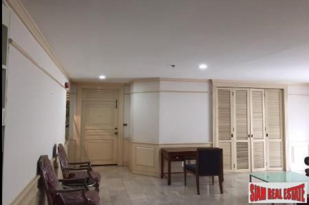 A very large two bedroom, two bath condo is for sale in the Moon Tower. It is situated on the 4th floor, fully furnished and is 141.74 sqm. The living space is wide and open, many closets for storage and lots of room to move around.There is a living room, dining room and fully equipped Western kitchen. The kitchen has white cabinets and black and white tiling. Both bedrooms have large windows and built in wardrobes and the contemporary bathrooms have cabinets and glass showers. There are many windows throughout the unit letting the sun in and giving the apartment a cheerful atmosphere.